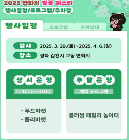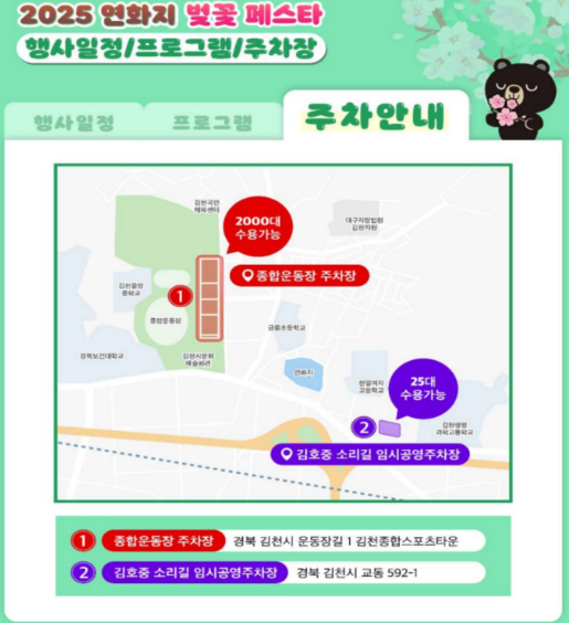 - 주차 정보: 김천시에서 운영하는 임시 주차장이 근처에 개방됩니다. 도보 5분 거리!