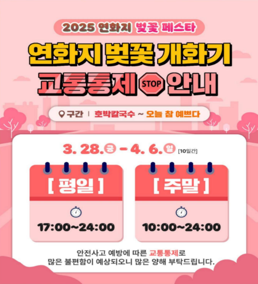 - 교통 통제: 축제는 취소됐지만, 주말엔 일부 차량 진입 통제될 수 있어요. 대중교통 이용을 추천!