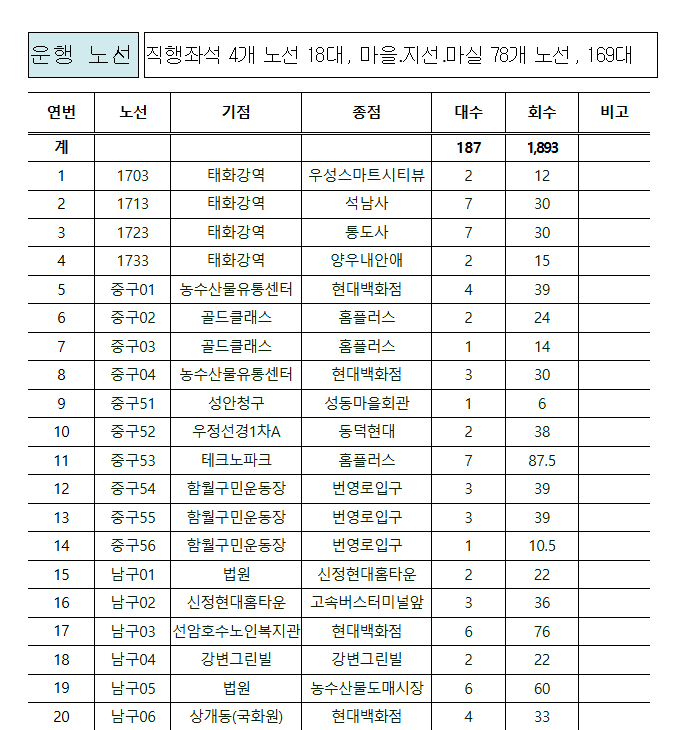 울산 시내버스의 기본 시간표는 울산버스정보 앱이나 울산 교통관리센터 홈페이지에서 확인할 수 있어요. 하지만 이번 파업으로 인해 많은 노선의 운행이 중단되거나 변경되었기 때문에, 기존 시간표와 실제 운행 상황이 다를 수 있어요. 특히 출퇴근 시간대에는 일부 노선만 제한적으로 운행되거나 아예 운행되지 않을 수 있어요. 따라서 시민 여러분께서는 실시간 정보를 통해 원하는 노선의 운행 여부와 시간을 확인하시는 것이 중요해요.