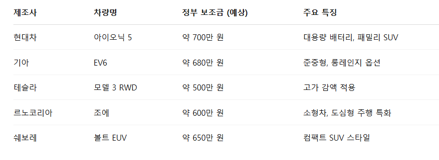 👉 지금 바로 전기차 보조금 대상 모델과 신청 정보를 확인해 보세요!