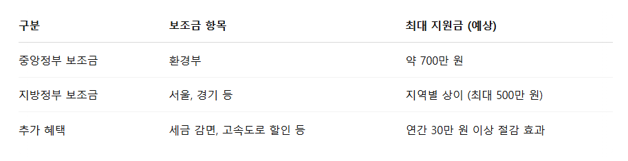 📌 참고: 차량 가격이 5,700만 원 이상이면 보조금 감액 또는 미지급