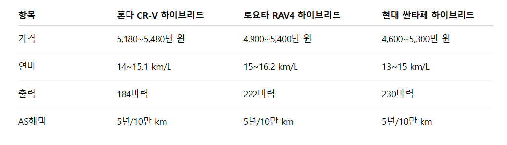 2025 혼다 CR-V 하이브리드는 고연비, 높은 안전성, 우수한 내구성을 모두 만족시키는 중형 하이브리드 SUV예요. 5천만 원대 SUV 시장에서 ‘연비 좋은 패밀리카’를 찾는다면 충분히 구매 가치 있는 모델이에요.