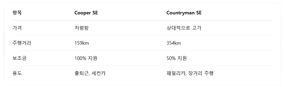 🔍 MINI Cooper SE vs Countryman SE ALL4 비교